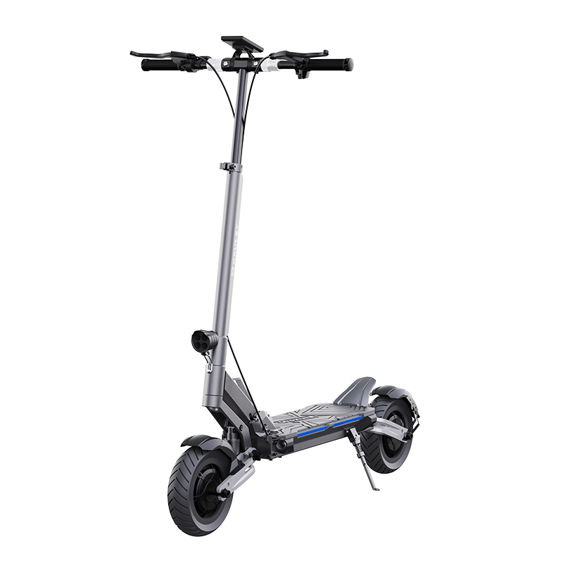 Електричний скутер OKULEY R8 DUAL оснащений 10-дюймовими пневматичними шинами та передніми та задніми пружинними амортизаторами, які дозволяють досягти плавної та комфортної їзди по будь-якій місцевості. Подвійні пружинні амортизатори можуть зменшити удар, спричинений нерівною дорогою, а 10-дюймові шини можуть підвищити стабільність. Тож Okuley R8 DUAL зможе комфортно перевезти вас куди завгодно, будь то сільська місцевість чи міські вулиці.